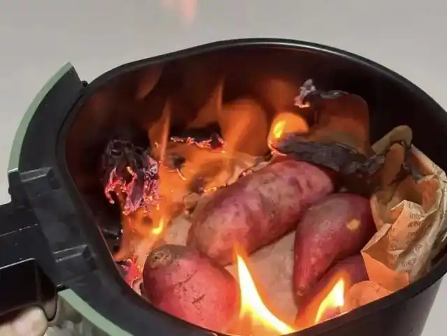 2023年12月24日,湖南一女子用空气炸锅烤番薯,结果发现吸油纸着了火,还好发现及时,没有造成严重的损失。