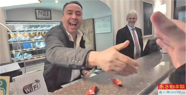 “Verypleasantexperience(非常愉快的经历)!”卡雷姆对南都记者说,“直到现在每天仍有中国游客专门找到酒店,把糖交给我,每次收到糖我都非常开心。”