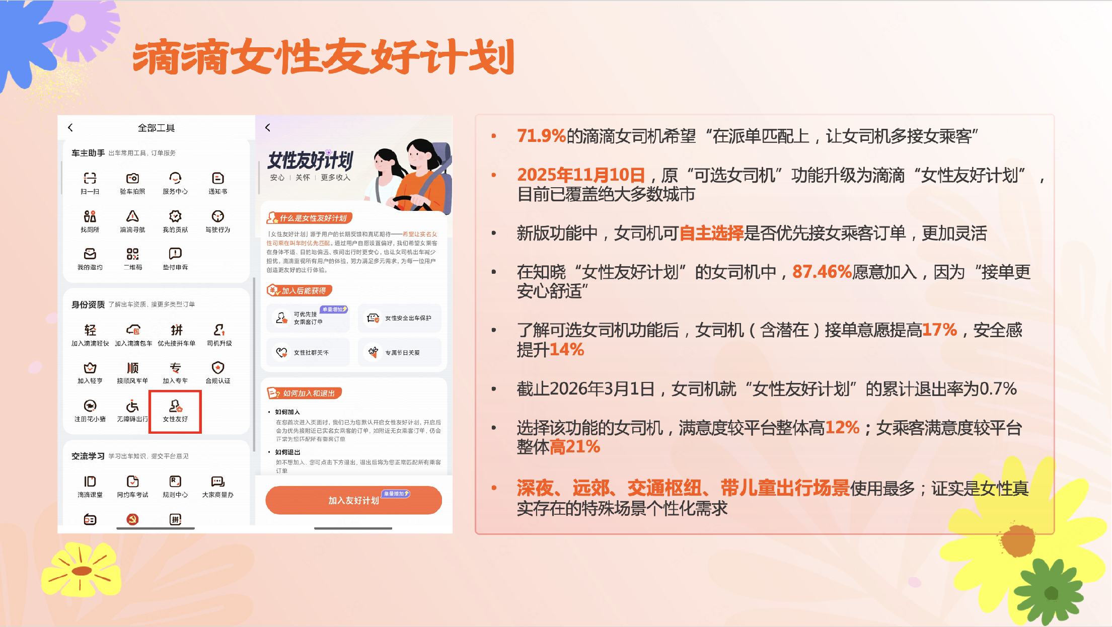 滴滴女司机关怀计划介绍