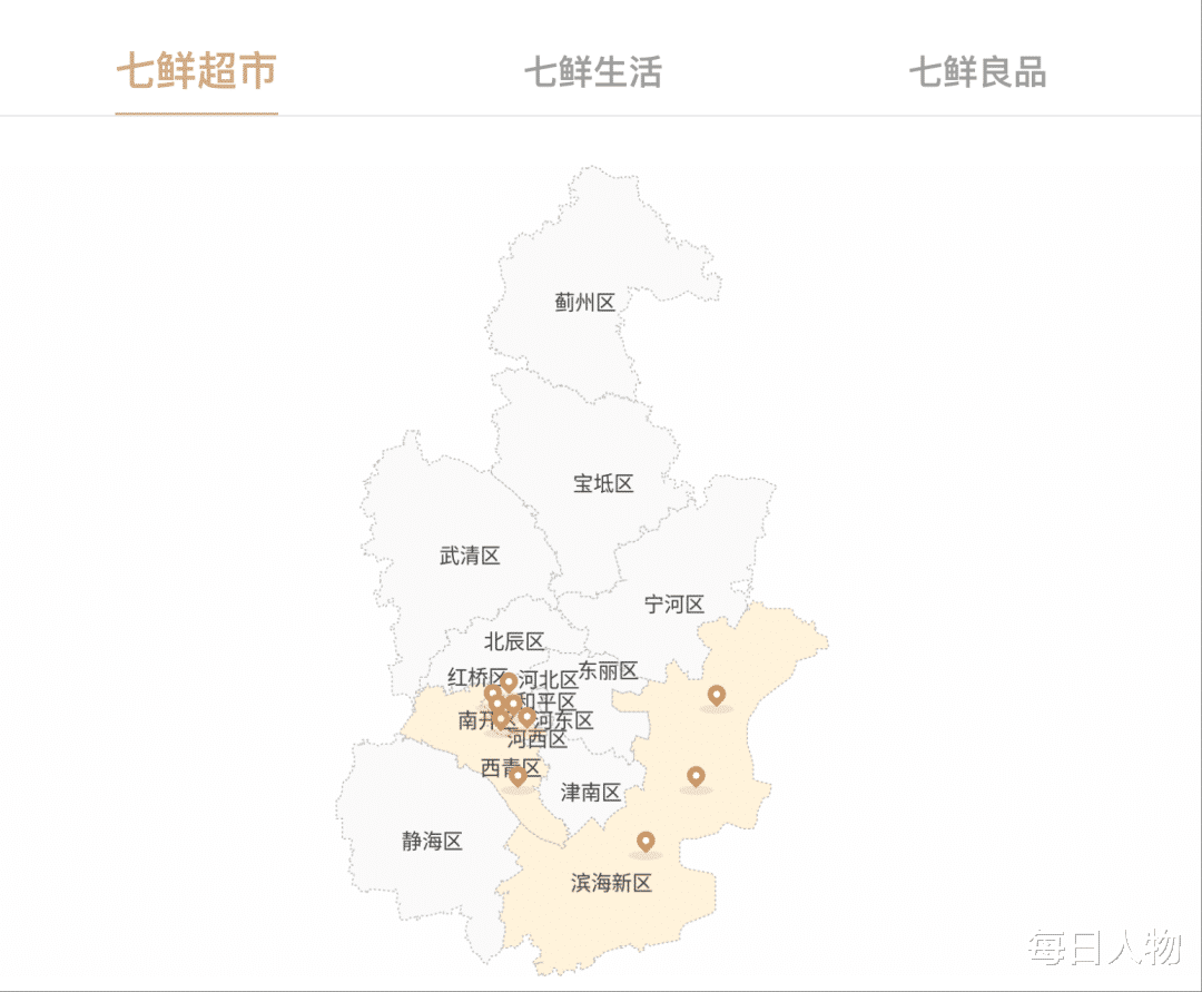 ▲ 除北京外,天津是七鲜门店数量最多的城市。图 / 截图