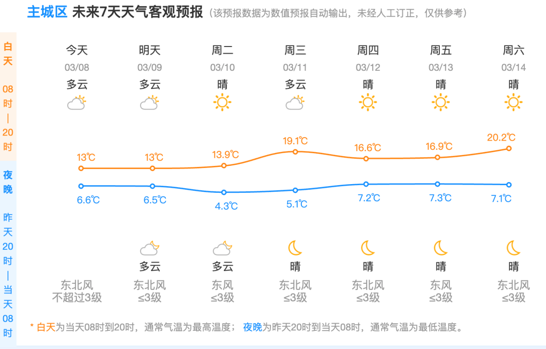 3月12-13日:全省多云。