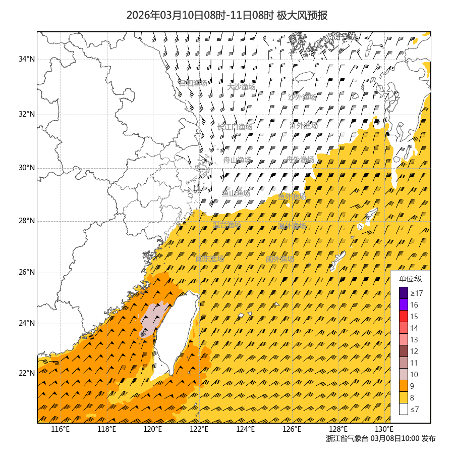 此外,也需关注冷空气带来的大风,明天下午起我省风力逐渐增大,其中内陆地区增大至5-7级,浙江沿海海面增大至8-9级,过往船只需注意大风影响,做好防范!