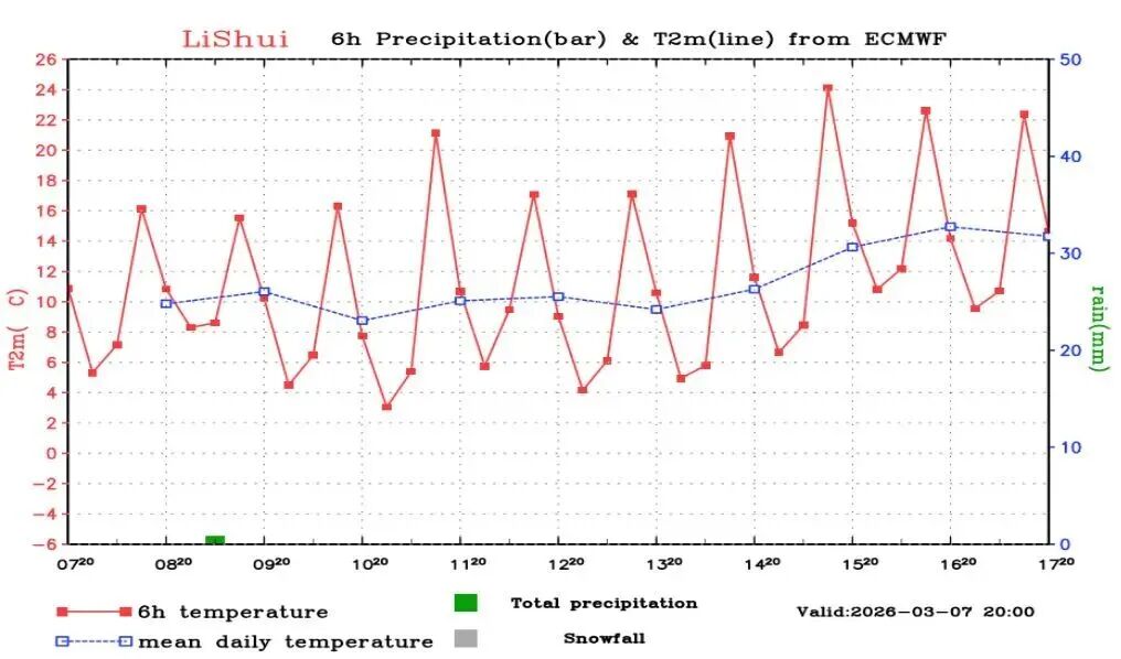 中期时段全省晴多雨少,气温总体平稳。雨水“行程表”如下: