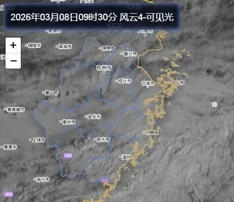 受西南暖湿气流影响,今天上午浙江云系总体较多,阳光透过云层的夹缝,偶尔出现露下脸。雨水主要在浙中南地区现身,总体较弱。