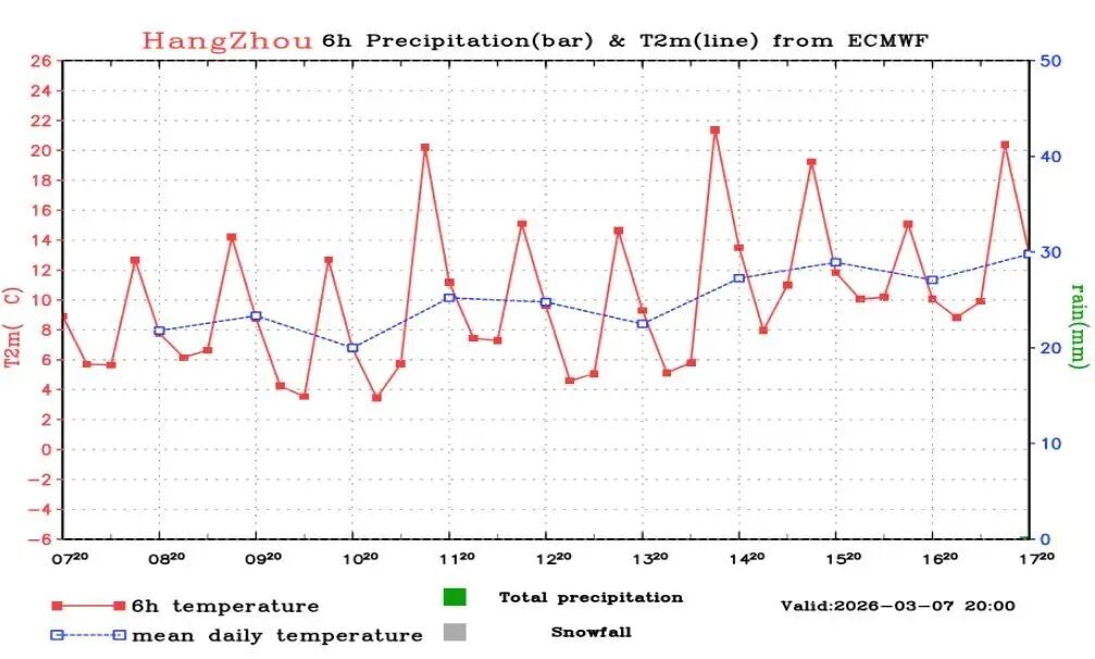 虽然杭州入春已经有一段时间了,但是春寒料峭的感觉依然很重。尤其是白天的气温在本周持续低迷,受频繁阴雨和冷空气的双重影响,最高气温自3月2日以来均在15度以下,人们出门依旧是冬装不离身,丝毫感受不到春天的暖意。