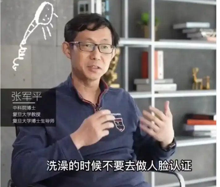 在那条5年前的科普视频中,张军平教授提醒大家,千万不要在洗澡的时候去做人脸认证。他说:“你确确实实要把衣服穿好,摄像头并不是只看到圆的这一块的内容,它其实全部都看到了,所以洗澡的时候不要去做人脸认证。”