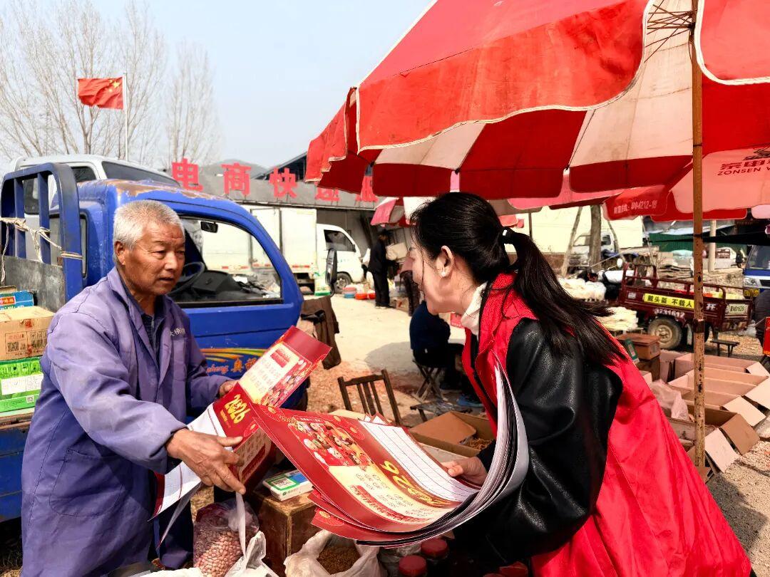 在活动现场,“移风易俗”的宣传摊位上,移风易俗主题日历、倡议书整齐陈列,红色布兜、清凉扇子、可爱鼠标垫等印有文明标语的实用礼包,引得赶集群众纷纷驻足、争相领取。文明实践移风易俗宣讲员身着红马甲,巧用乡音土语,将清明文明祭祀、婚丧嫁娶新规、抵制高额彩礼、反对铺张浪费等政策条文,娓娓道来、化繁为简,真正变成了群众听得懂、记得住、传得开的“家常话”,让移风易俗理念在潜移默化中入脑入心。