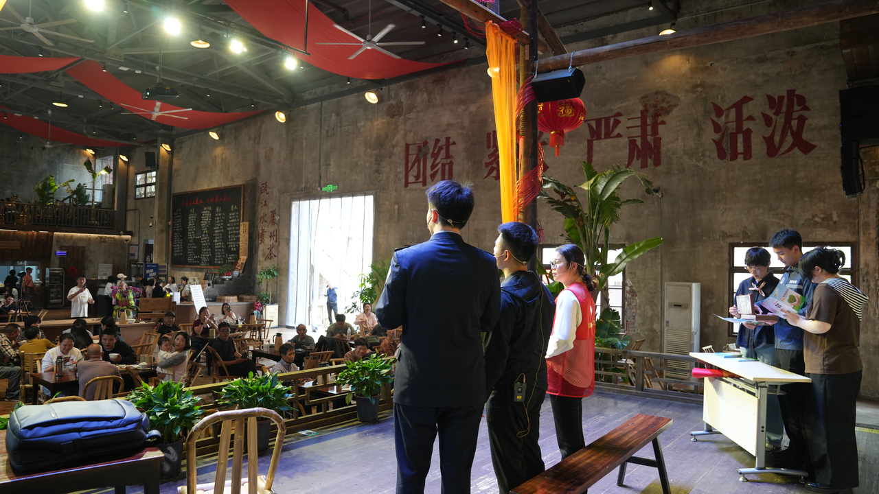 “原来毒品摧毁一个家庭,只需要一次‘好奇’,请珍爱生命、远离毒品!”4月14日中午12时正值饭点,在多次受到央视关注、央视《三餐四季》取景地、网红打卡点——丽水市莲都区继光街茶馆,一场由丽水市公安局莲都区分局万象派出所民辅警自编、自导、自演的原创小品《别让好奇毁一生》,正在场地舞台上演,现场民辅警用精彩的演绎为全场食客送上一道精心准备的“禁毒大戏”。