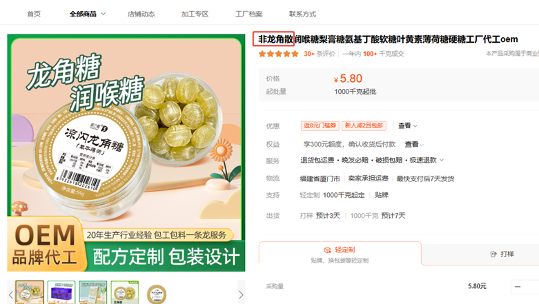 面对猖獗的山寨行为,龙角散没有视而不见,而是拿起法律武器维权。2025年9月,龙角散起诉厦门永福星保健品有限公司,该公司擅自使用近似商标“龙角糖”,并通过关键词引流进行不正当竞争。最终,法院判处被告停止侵权,赔偿龙角散10万元。