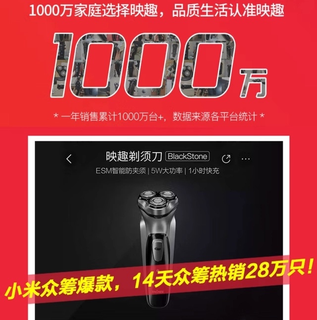 如今剃须刀已经达到了年销千万的成就,而好评率更是高达了97%,