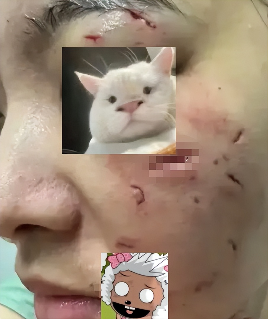 从照片上细细的数过以后,就会发现该女子的脸上的伤口共有10处,从伤口来看,当时路边的狗咬住的位置正是女子的苹果肌和腮的位置。