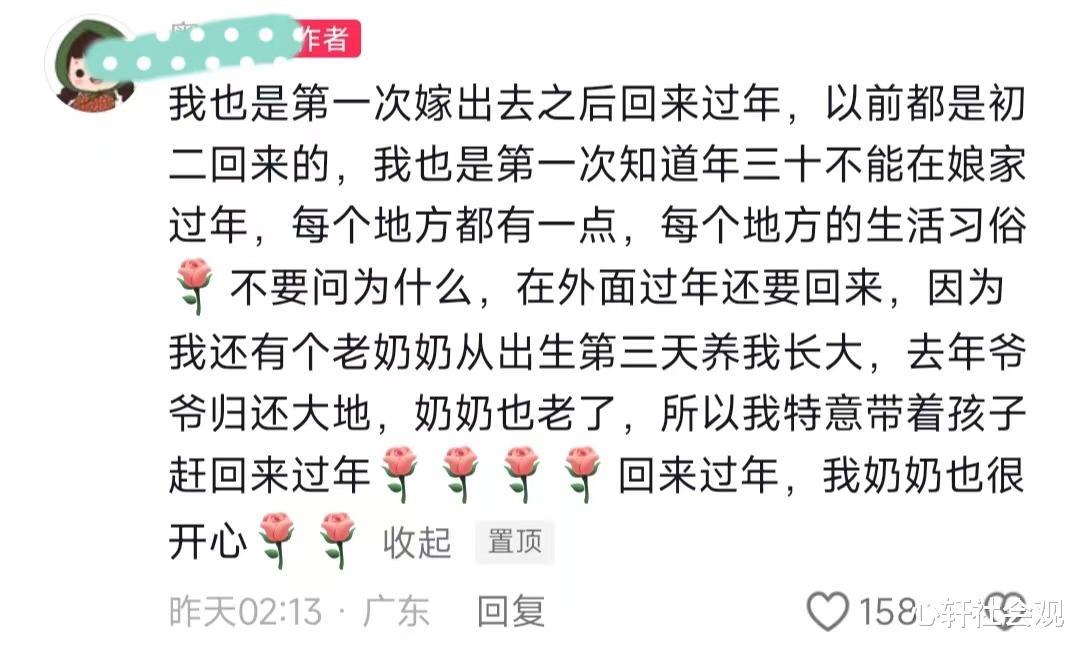 根据这名女子所言,她是结婚之后,第一次年前回到娘家,对于这个习俗她以前并不知道,所以她这次回娘家之后,才知道结了婚的女人不能回娘家过年。