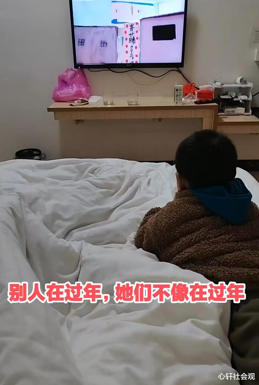 女子一家住在宾馆里面,没有欢乐孤零零,一家人守着电视整整看了两天。