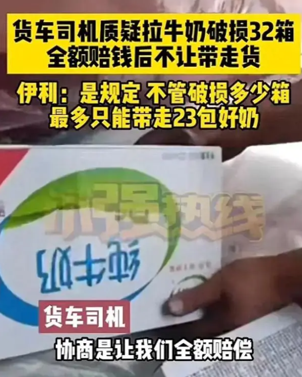近日,一货车司机拉牛奶出现破损,遭伊利索要天价赔偿的事情引发关注。