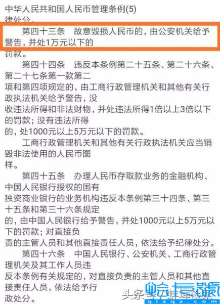 《中华人民共和国人民币管理条例》规定:任何单位和个人都应当爱护人民币,不准随意撕裂、剪割人民币。该条例还规定,对故意损坏人民币的违法行为,将处以1万元以下罚款。