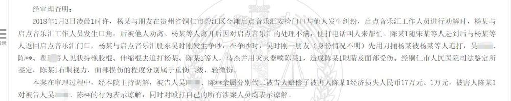 判决书显示,早在2019年,另一家“启点音乐汇”酒吧包括股东、人事部经理在内的多名工作人员因为殴打他人致重伤被判刑。而“魅力黔东”与“启点音乐汇”的工商登记地址一致。知情人称,两个酒吧实际是一家。