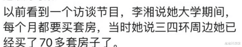 “李湘最大的兴趣爱好就是投资房产,除了买房就是买房。”
