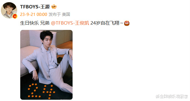 值得注意的是,王源和易烊千玺都是零点卡点送祝福,可见他们真的很用心。王源老师说:“生日快乐兄弟,24岁自在飞翔。”易烊千玺老师说:“祝凯哥生日快乐,24岁迈入更精彩的世界,继续做一个与热爱相伴的boy!”