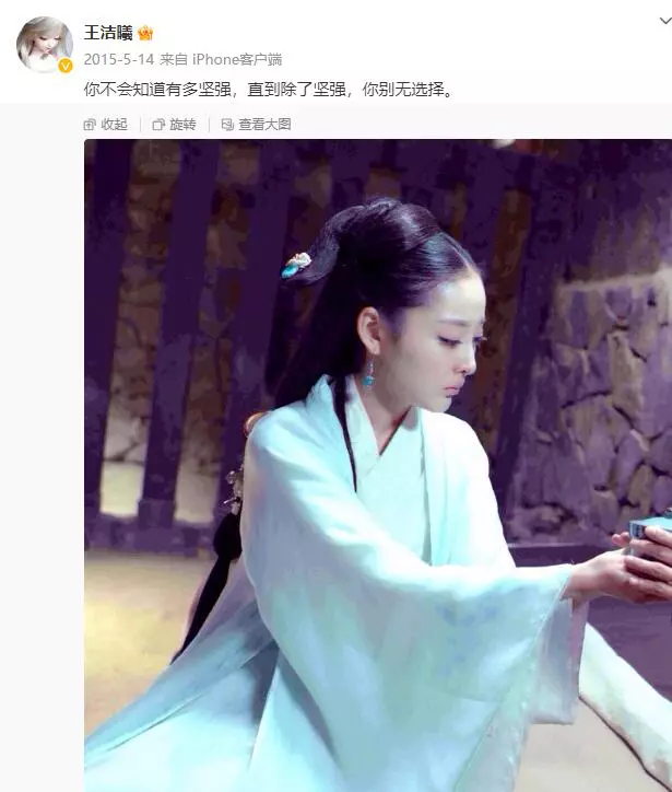 从她在微博上的分享可以看出,2014年11月她还在横店拍戏,2015年1月突然就发文表示自己要闭关休养一段时间了。