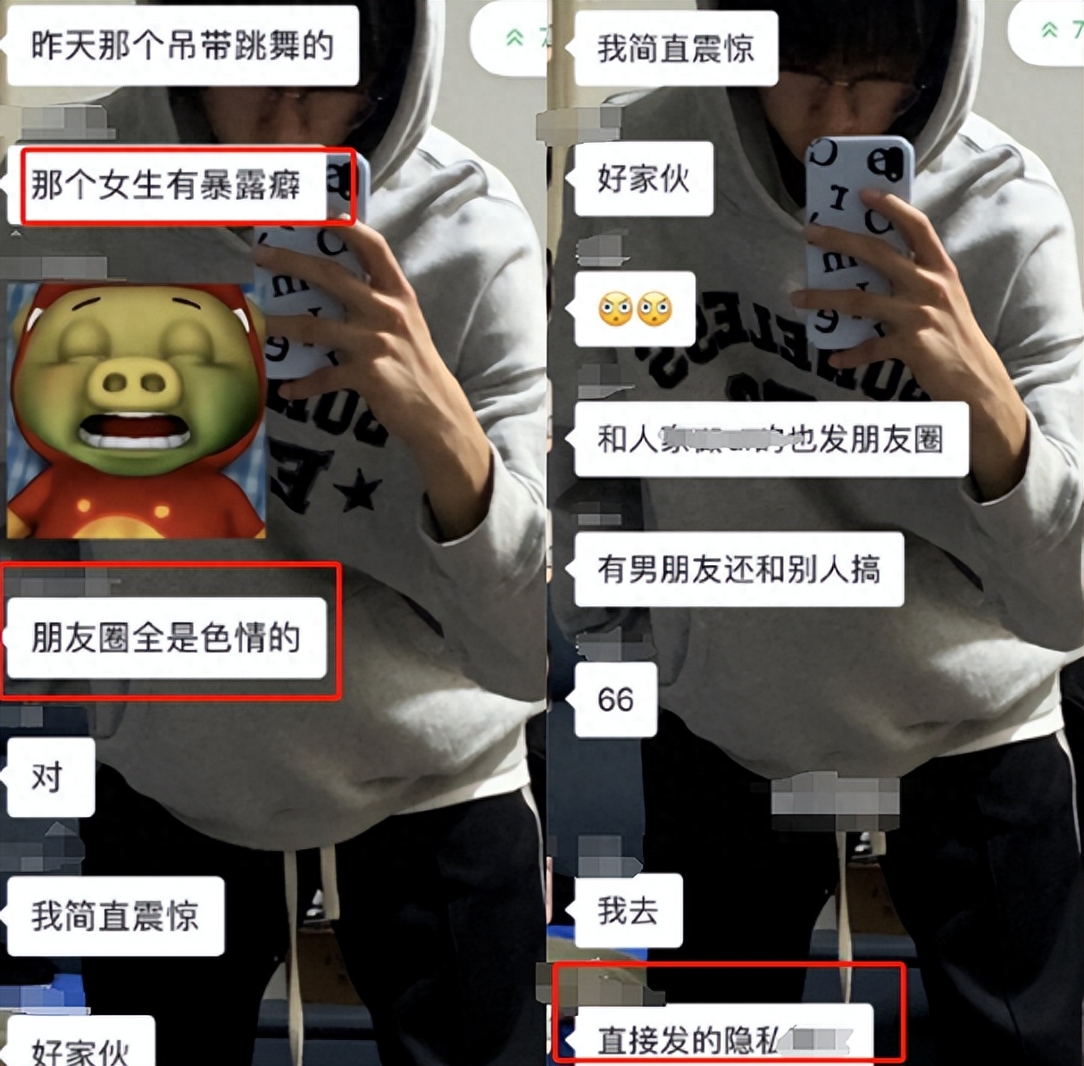 而有关女生有暴露癖,甚至本人也在自己的朋友群表示过自己有暴露癖,其实吊带姐不承认,向她没事就发隐私照片的行为就属于暴露癖的行为了。