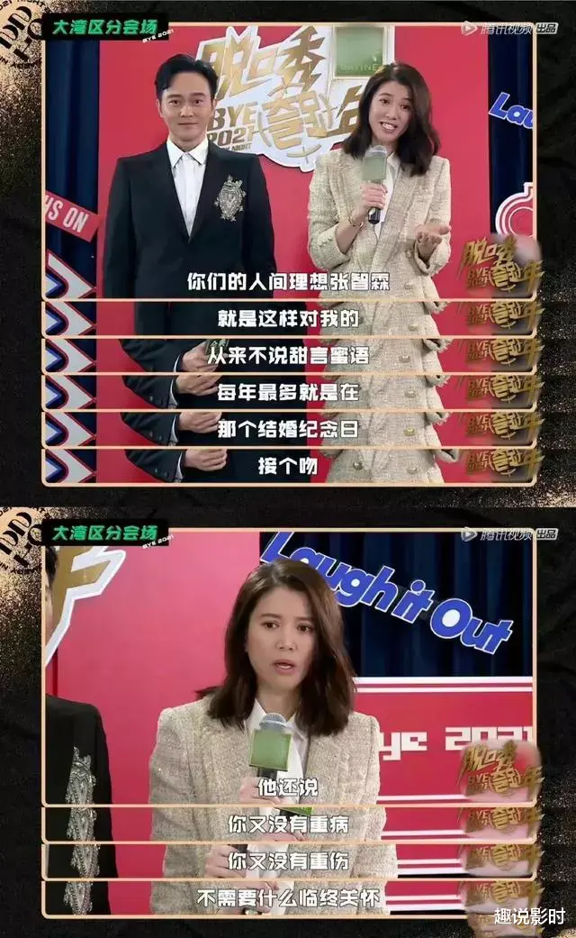 “你们的人间理想张智霖,从来不说甜言蜜语,每年最多就是在结婚纪念日接个吻。”