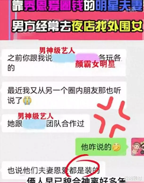 裂痕是从一张聊天记录开始的,据知情人爆料,某明星夫妻一直秀恩爱赚钱,实际上两人感情早就不和,男方玩得很花。