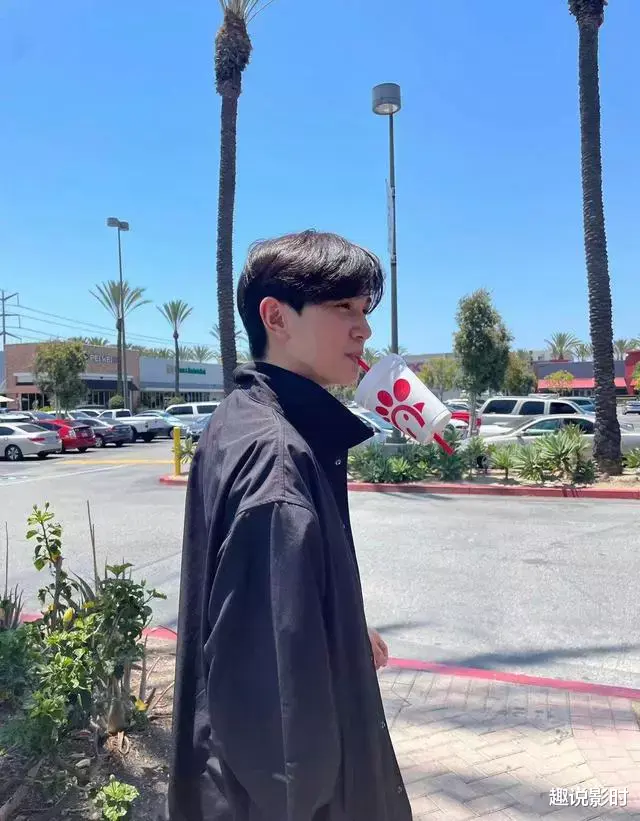 照片里的张魔童外型西化,身材高大轮廓立体。