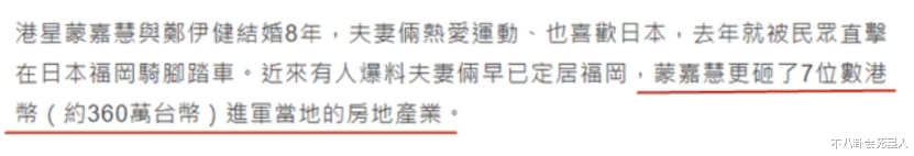 很多人都知道郑伊健和蒙嘉慧早几年就定居在日本了,蒙嘉慧曾多次表示很喜欢日本,后来更是苦练日语,移居到了日本福冈。