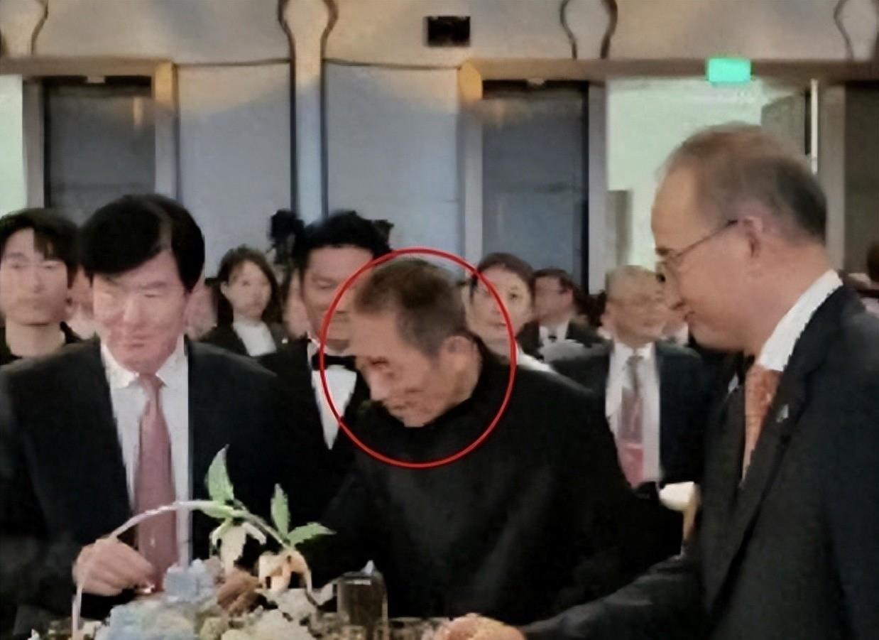 但当张艺谋正在与一位“大佬”交谈时,又有两人加入,根本没有把张艺谋放在眼里,直接将他挤到一旁,和“大佬”亲密交谈,张艺谋脸上仍带着谦逊的微笑,没有任何不悦。