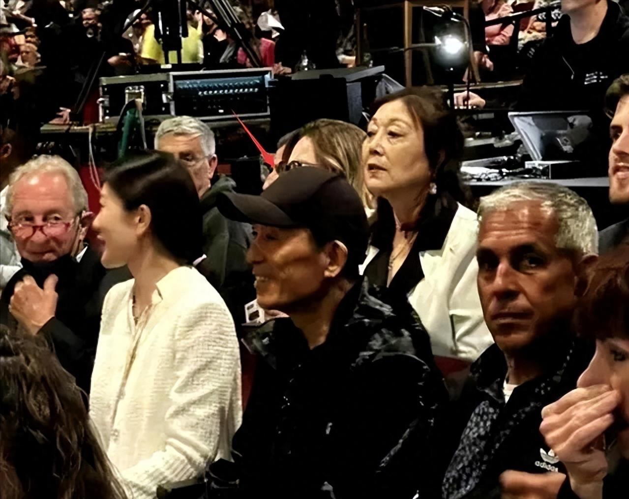 张导的娇妻陈婷也陪同前来,她与张导形成了强烈的黑白对比。