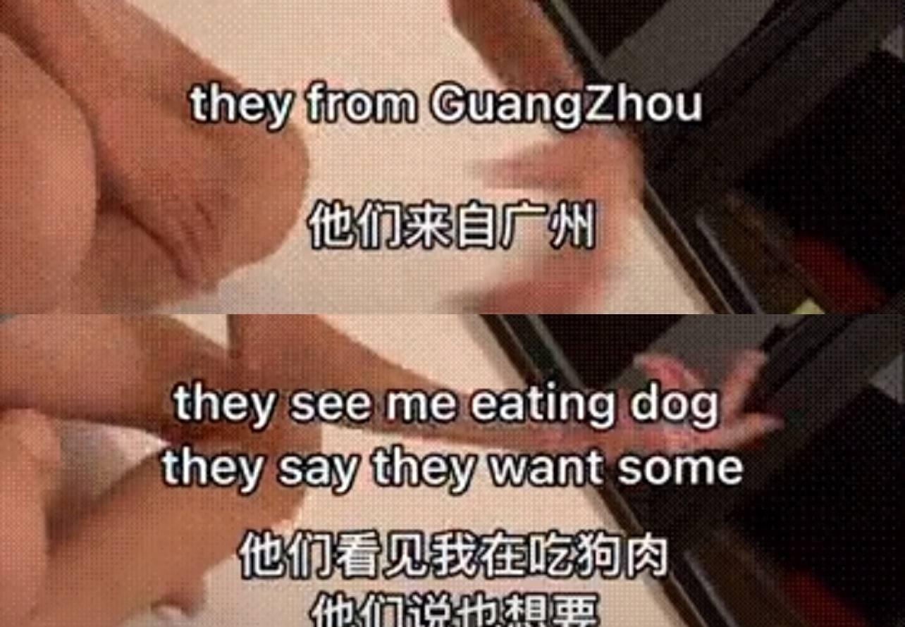 “他们来自广州,他们看见我在吃狗肉,他们说也想要。”
