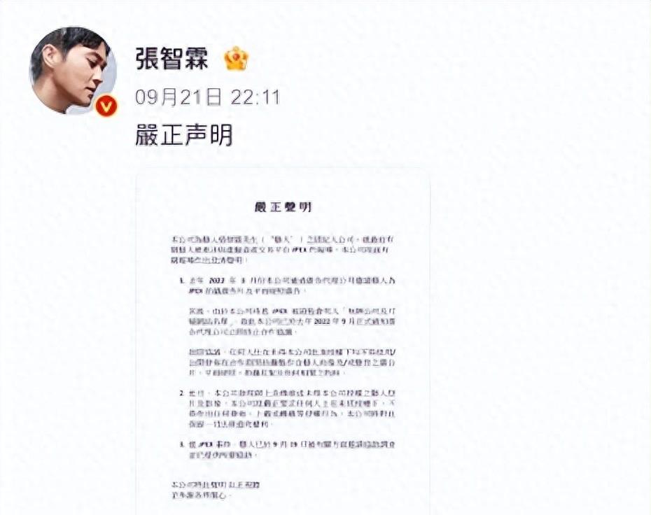 有传闻称,如果张智霖确实参与了诈骗,可能会被判刑,然而,事发后的当晚22时11分,张智霖的经纪公司就发表声明进行了澄清。
