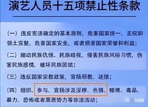 演艺人员15项禁止性条款中明确规定,演艺人员不得组织、参与、宣传涉及淫秽、色情、赌博、毒品、暴力等相关的非法活动。严格意义上说,虽然baby和张嘉倪不是组织者,但观看节目就等于参与了这项活动,因此即便被封杀也是有法可依的。