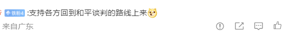 下图中广东网友引用官方声明回应了一句:支持各方回到和平谈判的路线上来。