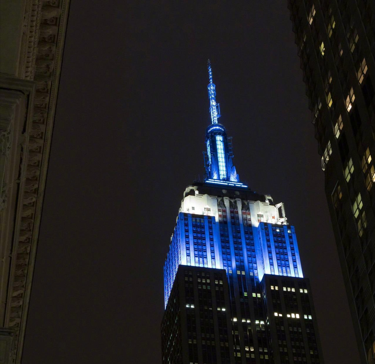 美国人则在纽约著名的帝国大厦投射出了以色列国旗的颜色。