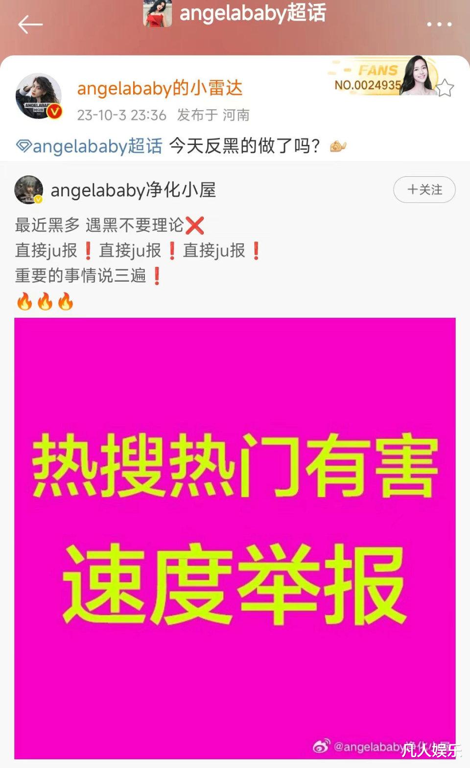 值得一提的是,杨颖超话主持人不仅澄清了杨颖照片无法做头像一事,还连发多文号呼吁粉丝反黑。