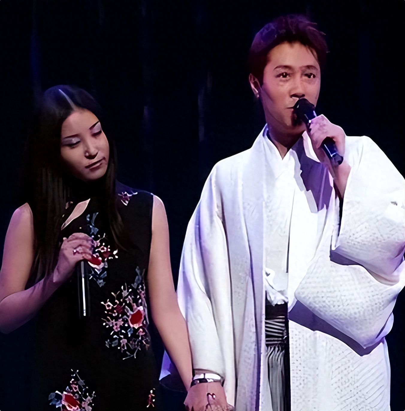 可是有着军衔的他却公然穿着和服和一位女歌手手拉手演出。