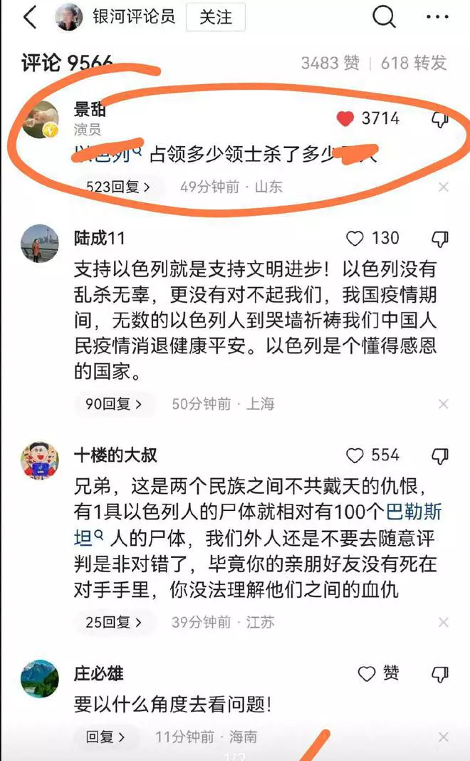 据统计,有网友在“巴以冲突”的相关文章过程中发现发帖子景甜身影,艺人景甜背着本身认证账户,公然评论留言发布超大尺度评论,对于“巴以土地”的事情发表了自己的看法,疑似在怀疑某省占领土地的事情。