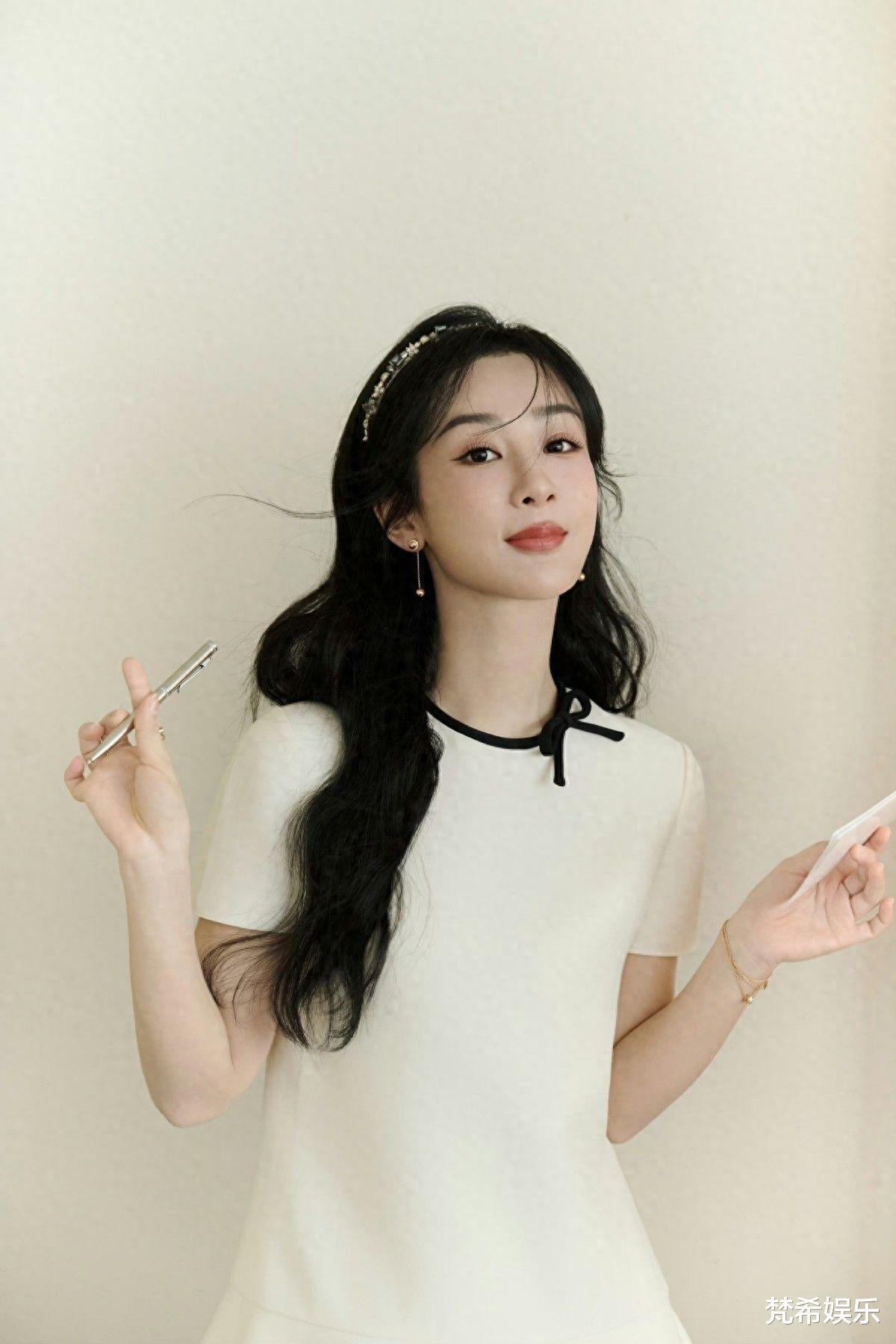 本来这套搭配是纯粹的“复古风”,杨紫一头浓烈的黑发造型,很适合这一套裙装搭配。