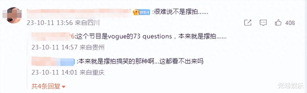 而且“小辣椒”这次参加的节目是《vogue》的73questions,其最大的特点是摆拍。