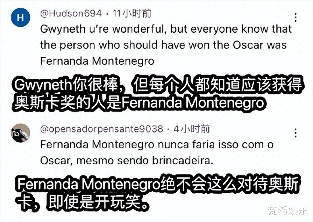 格温妮丝·帕特洛被指责,既然明知道自己不配,凭手段拿的小金人,那就将奥斯卡还给费尔南达蒙特内格罗。