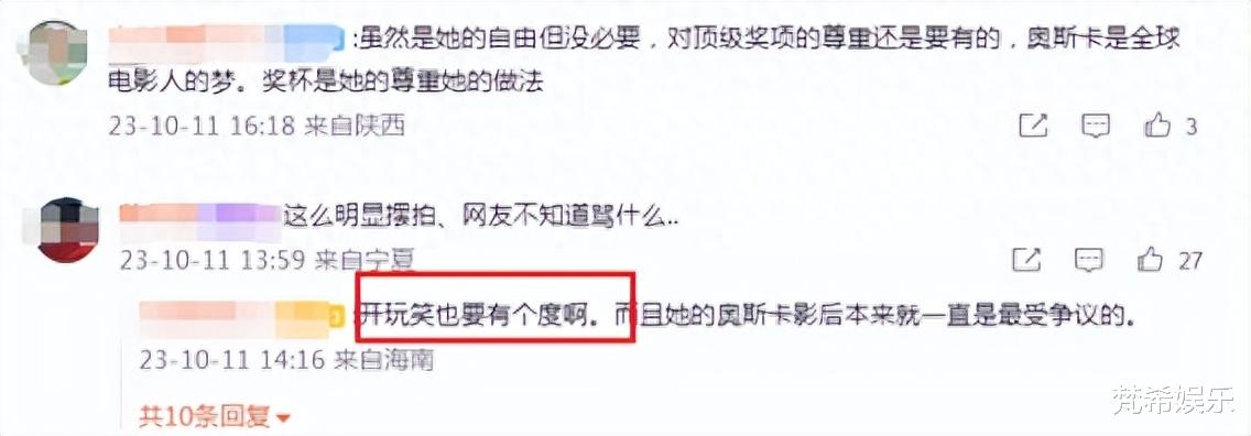 有人觉得她不尊重奥斯卡,毕竟奥斯卡是“全球电影人梦想殿堂级”的地方。