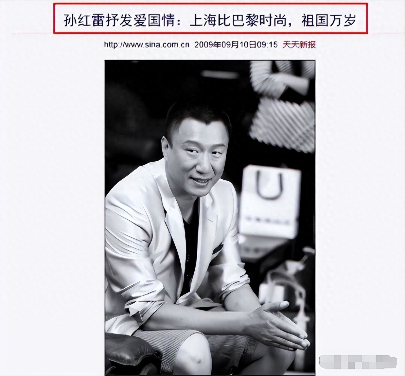2009年,孙红雷在飞天奖上高呼“祖国万岁”,一时间被视为明星中的爱国者。