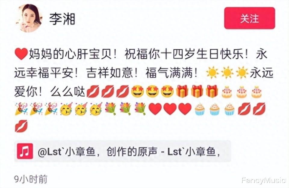 王诗龄说自己的孩子是心肝宝贝,希望她在14岁这一年能够更快乐,祝福她吉祥如意,又配上了很多可爱的表情。