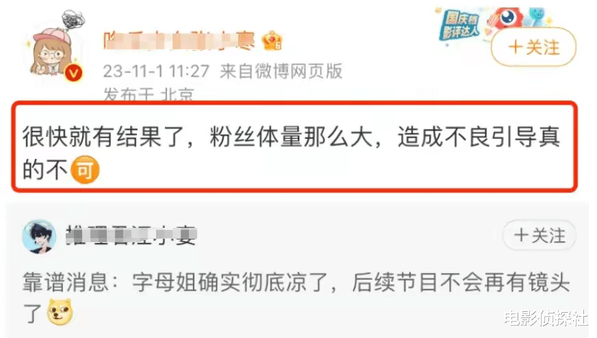 另一位娱乐大V则样子也有的表示杨颖彻底凉了,后续节目不会再有她的镜头了。