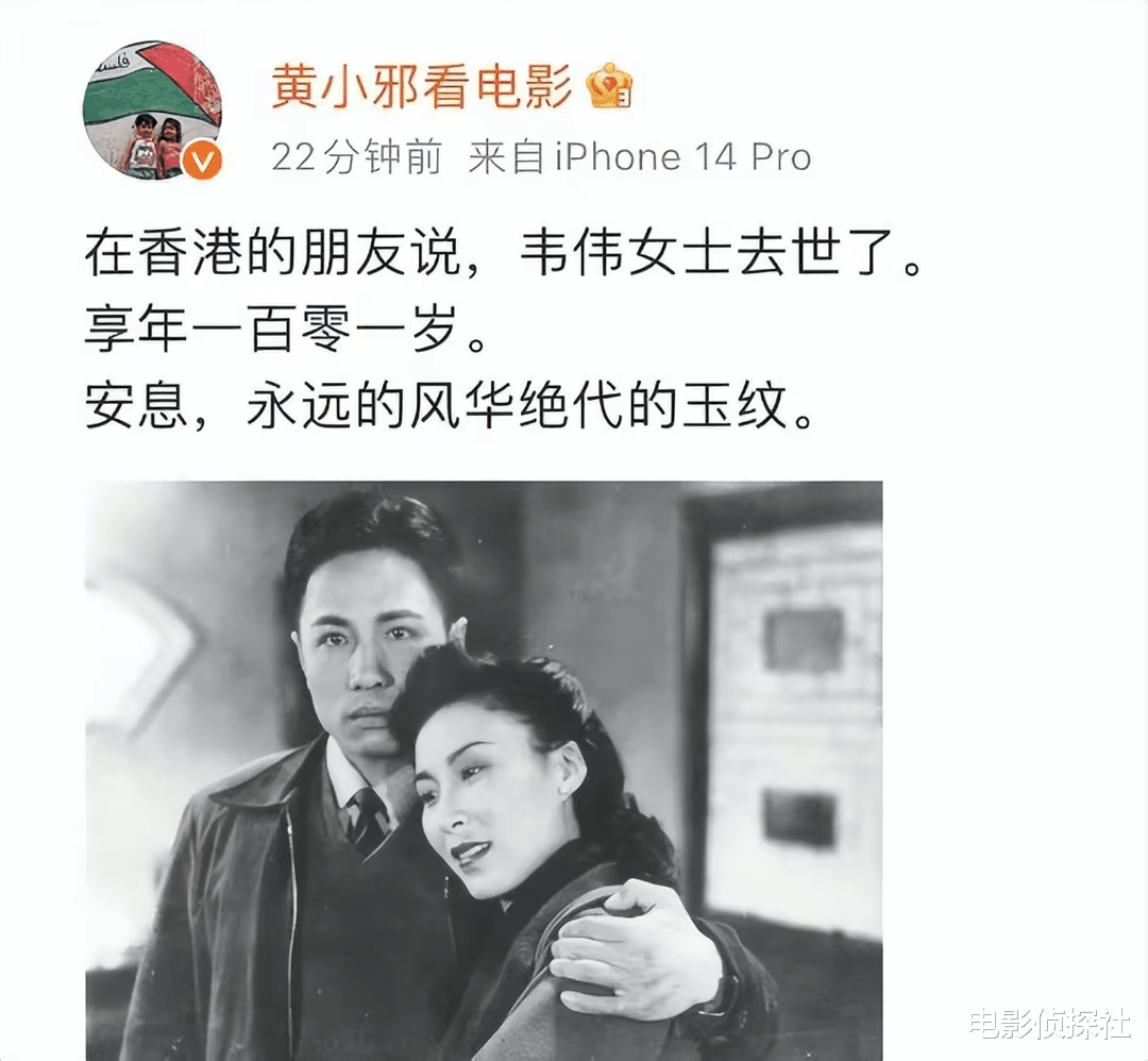 11月2日,据港媒透露,老艺术家韦伟在香港去世了,享年101岁。