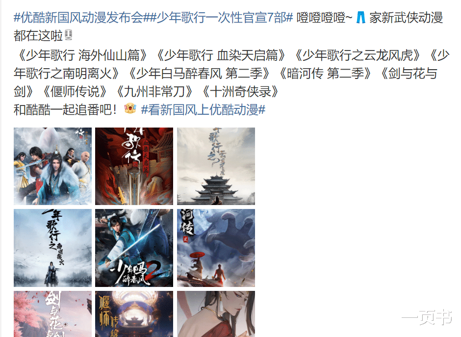 第一季完结之后很多人都期待第二季,关于第二季即将来袭,其实笔者已经说了很几次了。不久之前这部剧的作者周木楠官宣了《少年歌行》系列七部作品,这七部作品分别是《少年歌行 海外仙山篇》、《少年歌行 血染天启篇》、《暗河传2》、《少年白马醉春风2》、《花与剑与花》、《少年歌行之云龙风虎》、《少年歌行之南明离火》这七部。