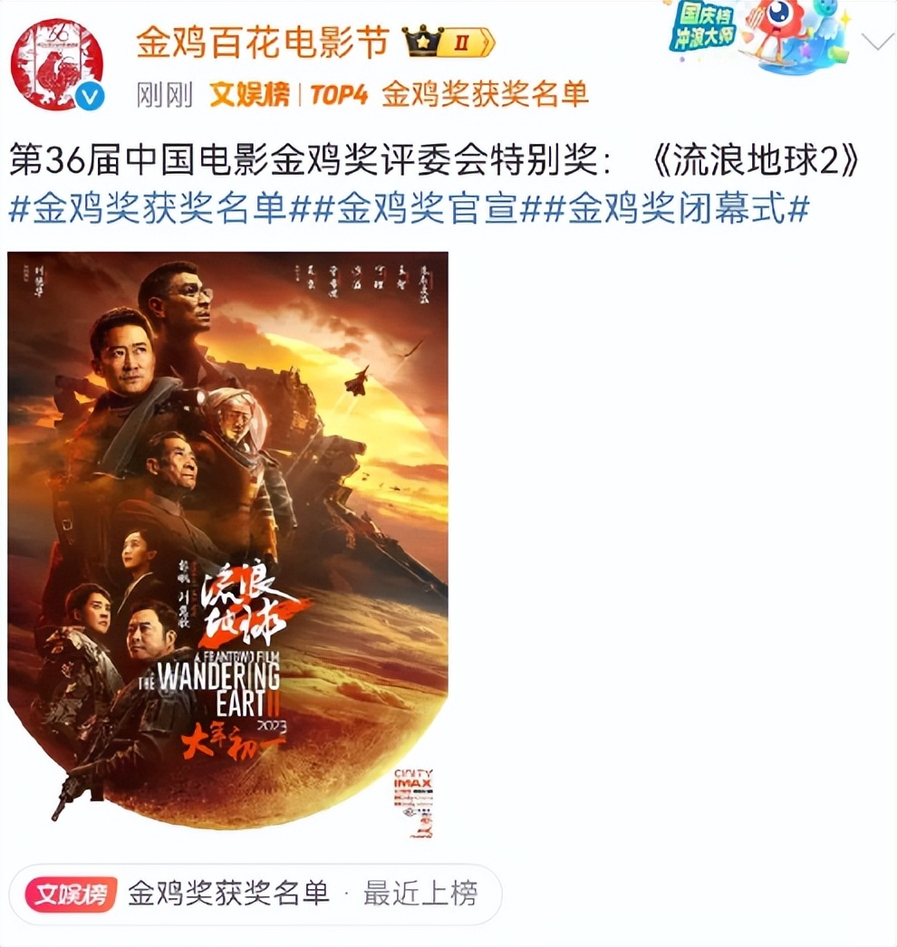 更何况《流浪地球2》也没白来,拿到了评委会特别奖。而最佳导演则是颁给了凭借《无名》入围的程耳,也是实至名归。