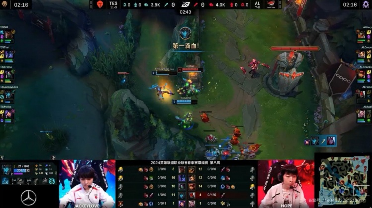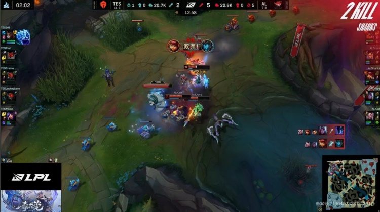 [42:04]妮蔻野区做视野被赵信捅死,AL直接收掉大龙,经济领先5k。