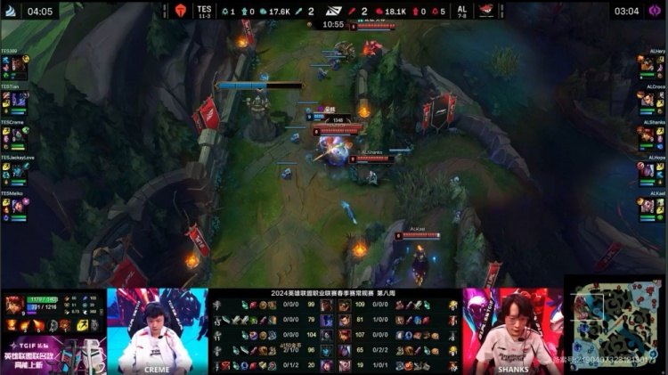 [10:52]AL五人来上强杀奎桑提得手,韦鲁斯与洛留在上路吃两层塔皮。